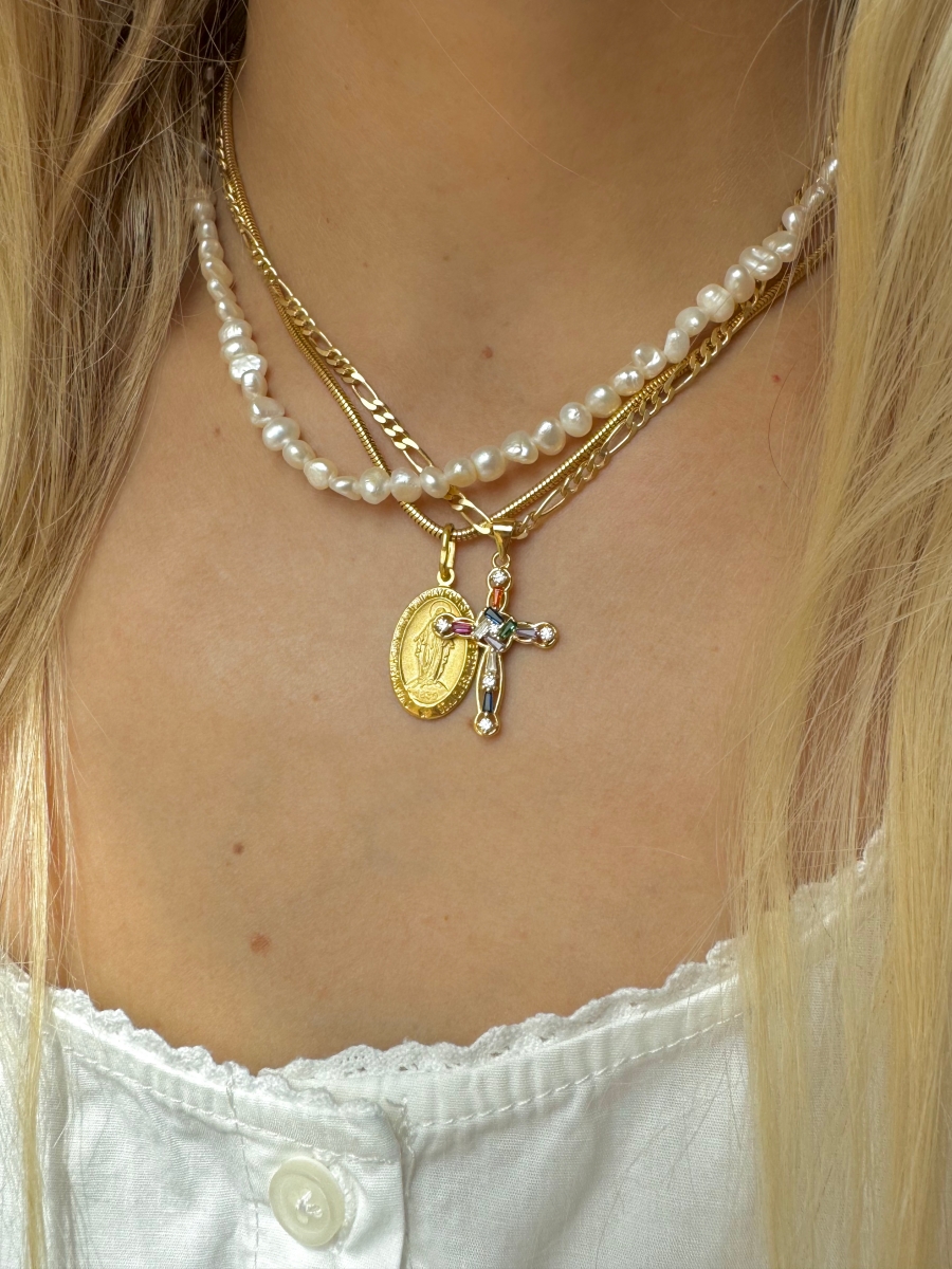 18k gold plated over sterling silver cubic zirconia cross on gold plated chain.