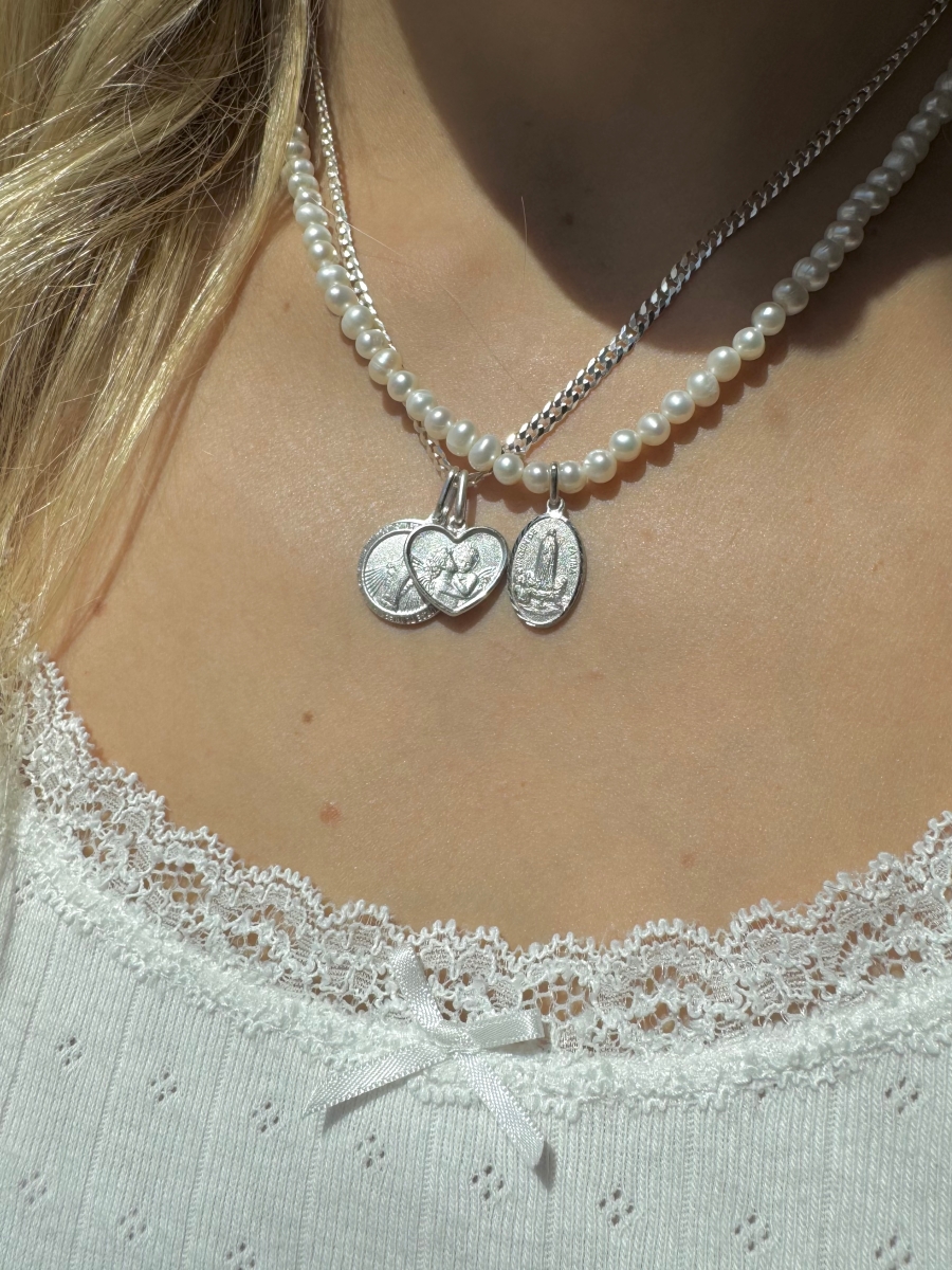 - Materials: Sweet water pearls (chain), 925 sterling silver (pendant).