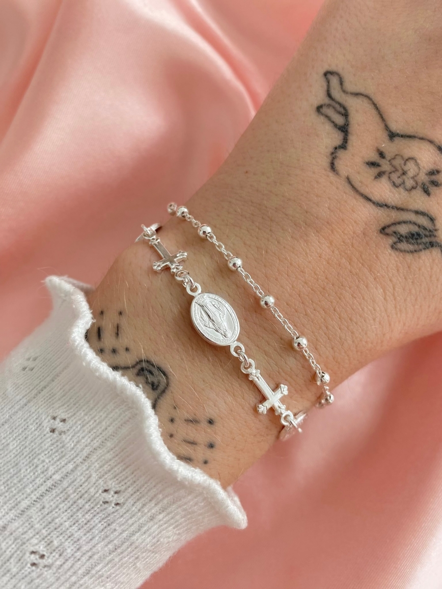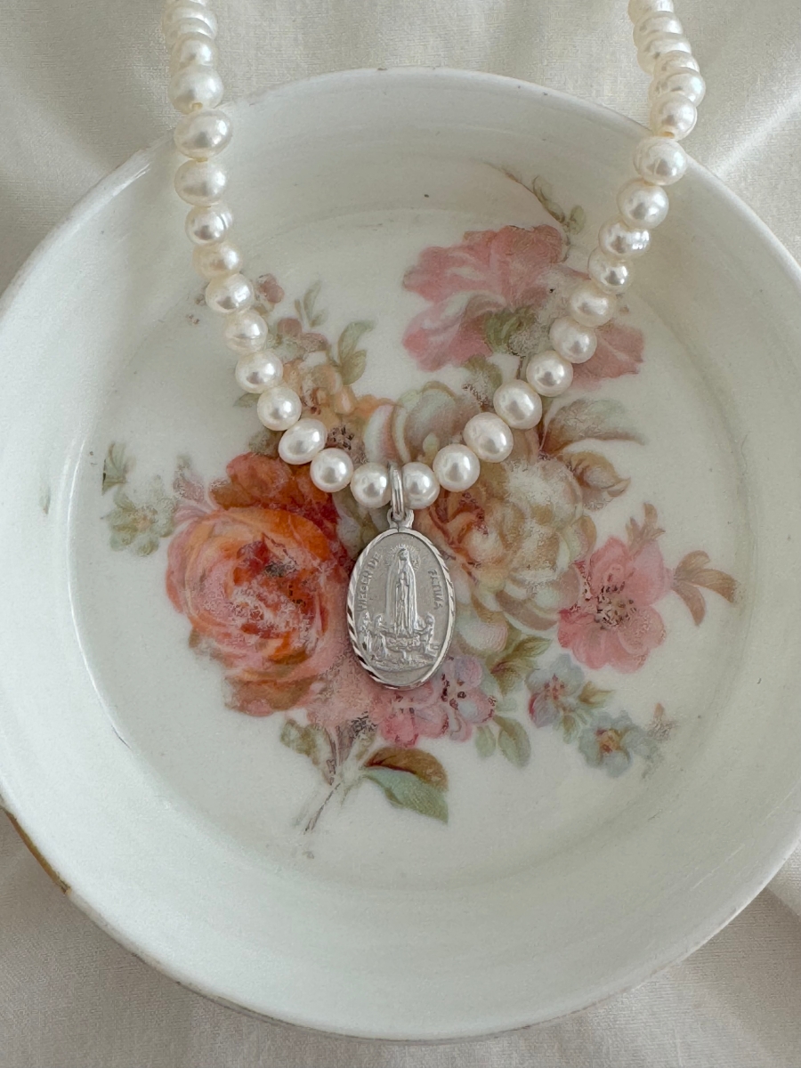 49,00 €Sterling silver Virgin Fatima pendant on sweet water pearl chain.