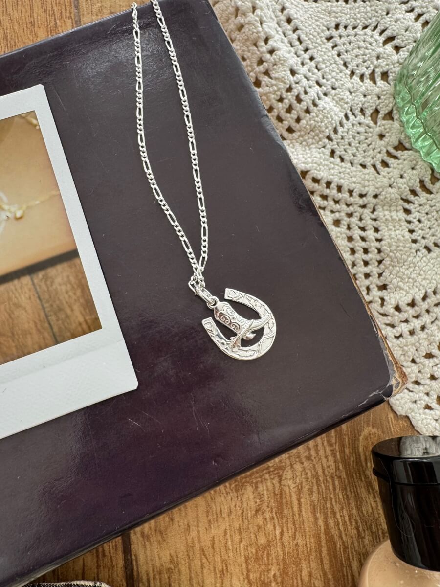 925 sterling silver necklace featuring a horseshoe and cowboy boot charm. A little symbol of luck and good energy for everyday wear.