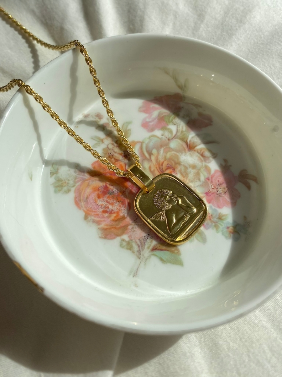 18k gold plated over sterling silver cherub on gold plated chain.