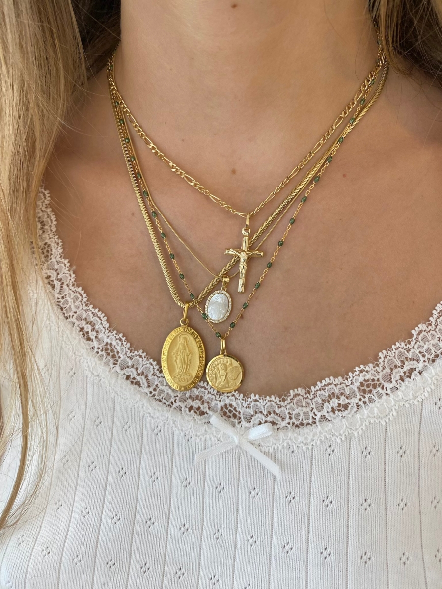 36,00 €18k gold plated over 925 sterling silver twist chain anklet with a Jesus charm and a small black heart-shaped charm.