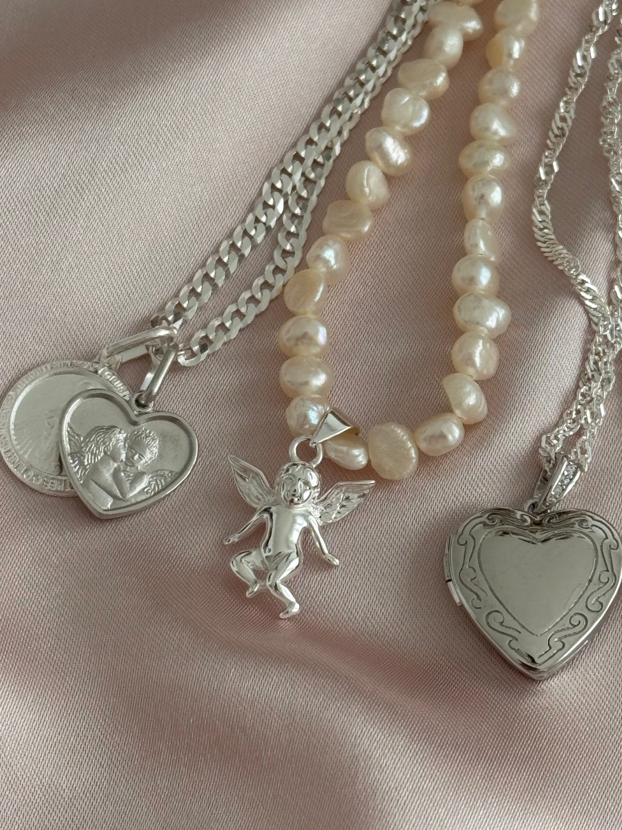 46,00 €Functioning 925 sterling silver heart engraved locket on 925 sterling silver chain.